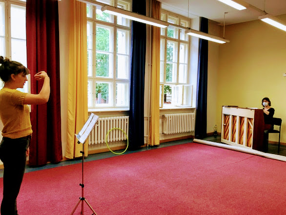 ![]() | Judith singt mit großem Abstand zu ihrer Lehrerin Alexandra Lachmann, Standort Prenzlauer Berg. | |