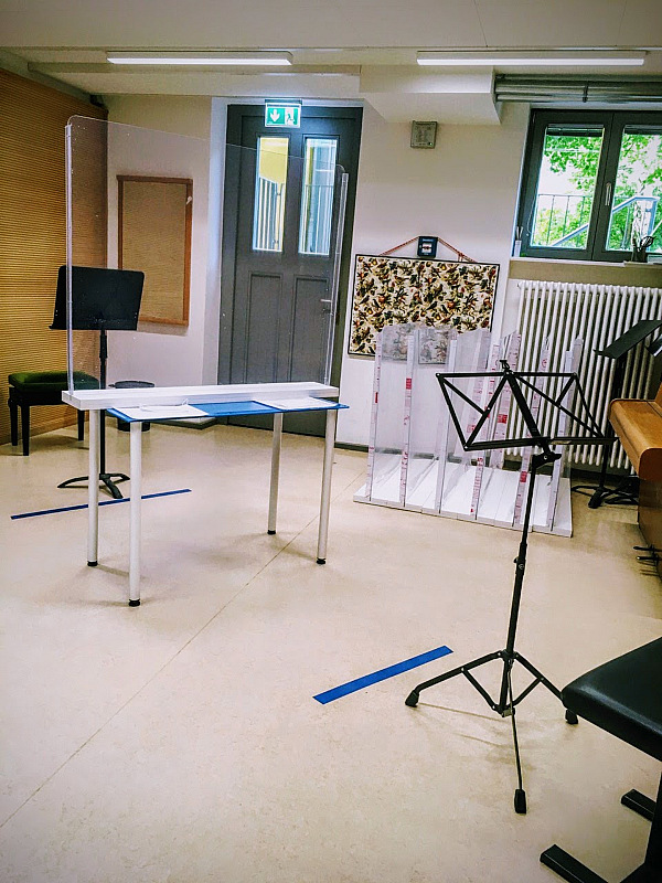 Seit dem 25. Mai 2020 fand der Einzelunterricht unter aufwändigen Hygienevorkehrungen wieder in den Unterrichtsräumen der vier Standorte der Musikschule statt.