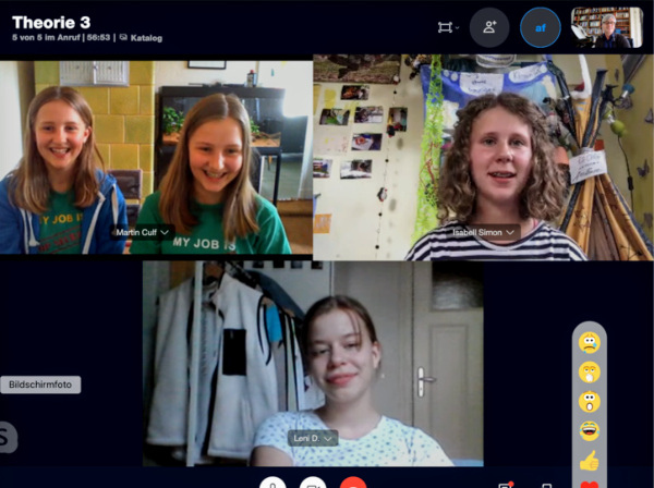 ![]() | Andreas Brunn mit Schüler*innen der Klecks-Grundschule im Gruppenunterricht per Zoom-Konferenz. | |